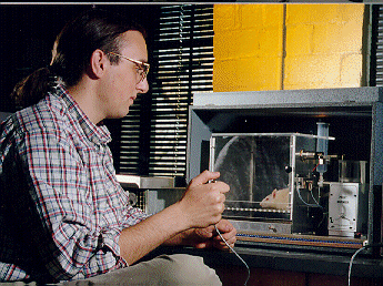 Student Zachary Florin 99 studies the effects of a stimulant on the behavior of a rat using a computerized behavior analysis chamber.