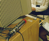 Students Hisham Foad 98 and Claire Willoughby 98 use a scintillation detector purchased with HHMI funds to observe the gamma ray spectrum of Co60. The detector and card interfaces with a computer purchased on an NSF-ILI grant.