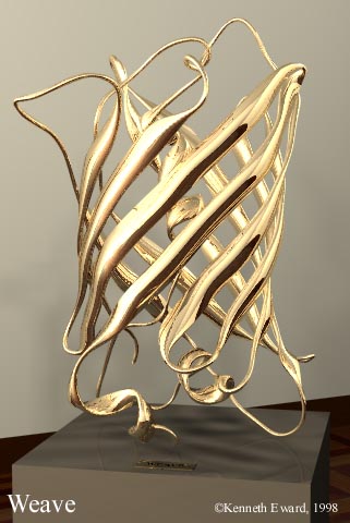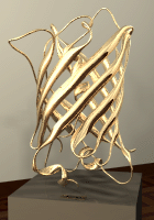 If you look closely at the animated image at right, you can see the gentle undulation of this molecule as its ribbons weave to and fro like the tentacles of the jellyfish from which it comes. Most proteins are actually quite dynamic in nature and continually flex and stretch in solution. This particular molecule, called green fluorescent protein, has the unusual property that it glows pale green in the dark; a feature appreciated by any swimmer who has seen a jellyfish at night. |